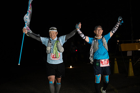 65kmの部は昨年に引き続き、渡邊晋史選手が優勝。今年からスタート時間が2時間早まったことも奏して、涼しくて走りやすかったそう。2位には「1位は遠かった。レベルが違う」とやや悔しそうに話してくれた昨年も2位だった柳田尚皓選手が、3位には昨年の40kmの部優勝の大寺真史選手が、女子の1位は終始、トップをキープしていた山田博美選手が入った。