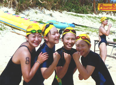 鹿児島から参加の4人組。「さあこれから5km泳ぐぞ!」