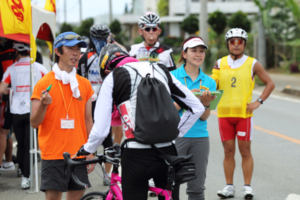 このサイクリングイベントでは宮古島スポーツ科学センターの協力で両種目に3名づつモーターバイク隊がサポート、各チェックポイントにはバイクメカニックが待機、参加者をエスコートするのはプロアスリートたちと、万全の体勢で参加者をフォローし、宮古島を満喫してもらおうとスタッフみんなが一丸となりました。