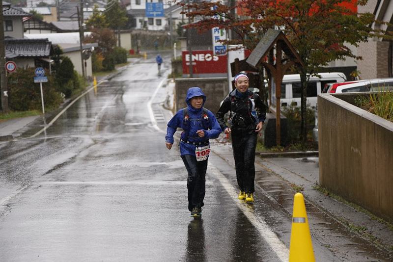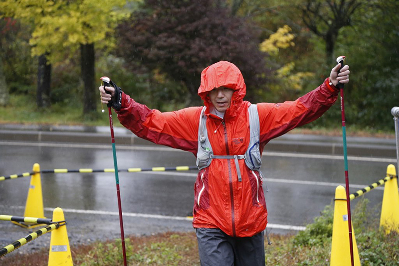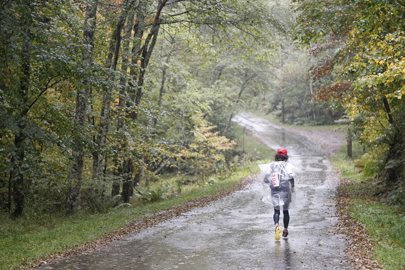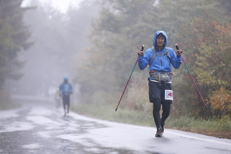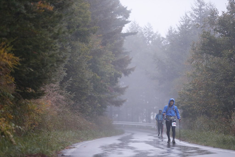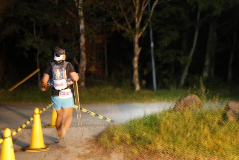 レース前日、隔周回毎に設けられていた関門時間を「第四周回まで関門なし」とレギュレーションが若干緩められたものの、トータルの関門時間36時間に変更はなく厳しいレースになりました。さらに、翌朝から降り始めた雨が選手の体温を奪い、松原湖エイドで暖まった選手が4周目・5周目の周回へ挑む心に強烈な葛藤をもたらしたことは間違いないでしょう。