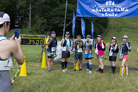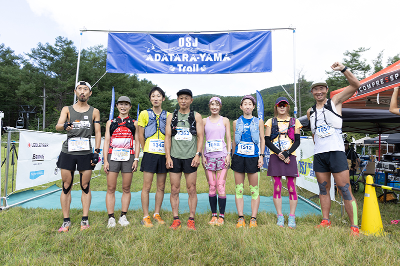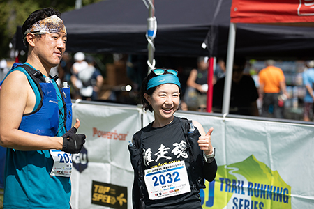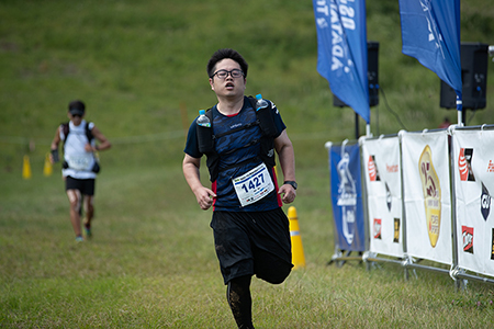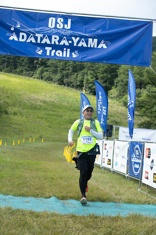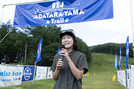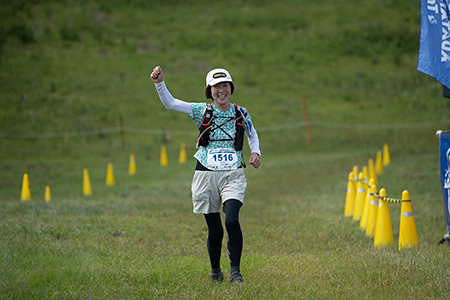 スタートから1時間20分後、トップでゴールに入ってきたのは、河崎鷹丸選手。今年のOSJトレイルランニングシリーズ第1戦と第2戦の新城トレイル10Kと32Kを制した選手だ。上りで2位以下を引き離し、苦手な下りを慎重に走っていたところ、ここで2位と3位の選手に抜かれたが、林道で抜き返して、みごとトップでゴールした。2位には昨年4位だった手嶋真紀選手、3位には15歳の平磯志真選手が入った。一方、女子は、昨年に引き続き、沼田夏楠選手が1位に。安達太良山トレイルが大好きという沼田選手のさわやかな笑顔が印象的だった。31組が参加したペア部門は、2回試走してレースに備えたという肥後武蔵選手、蔵人選手の親子ペアが1位となった。