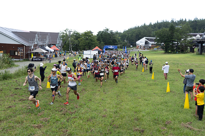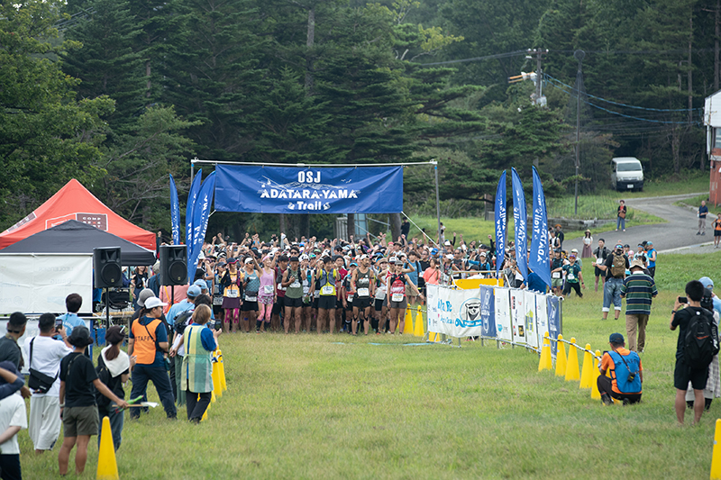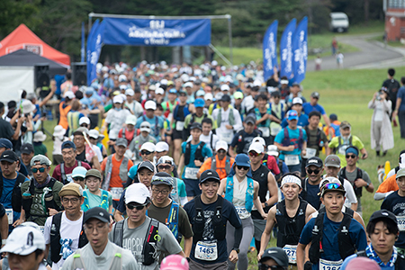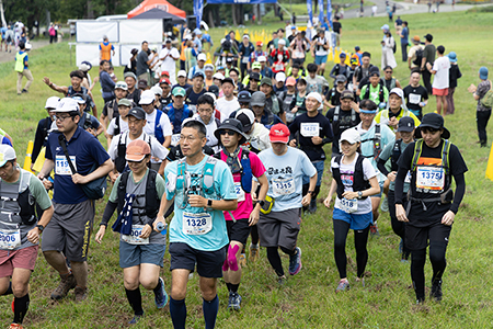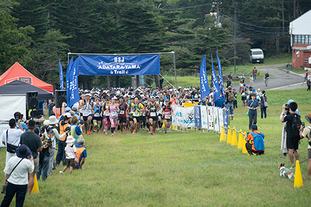 レース当日。7時30分から選手受付、スタートは10時というスケジュールで、会場のあだたら高原スキー場もどこかゆったりとした雰囲気が漂う。そして、定刻通り10時に、ソロ440名、ペア31組の選手が安達太良山山頂を目指して走り抜けていった。